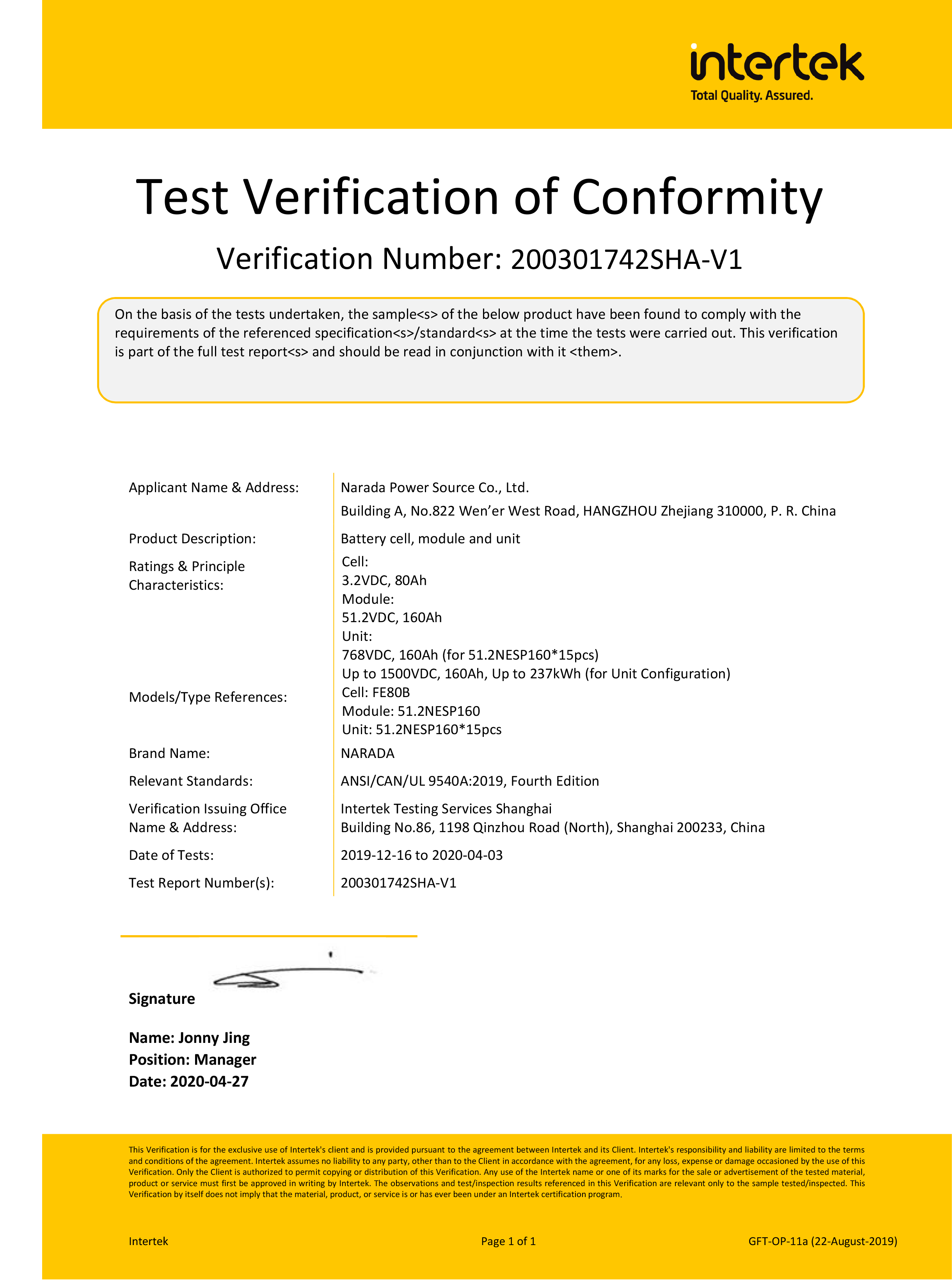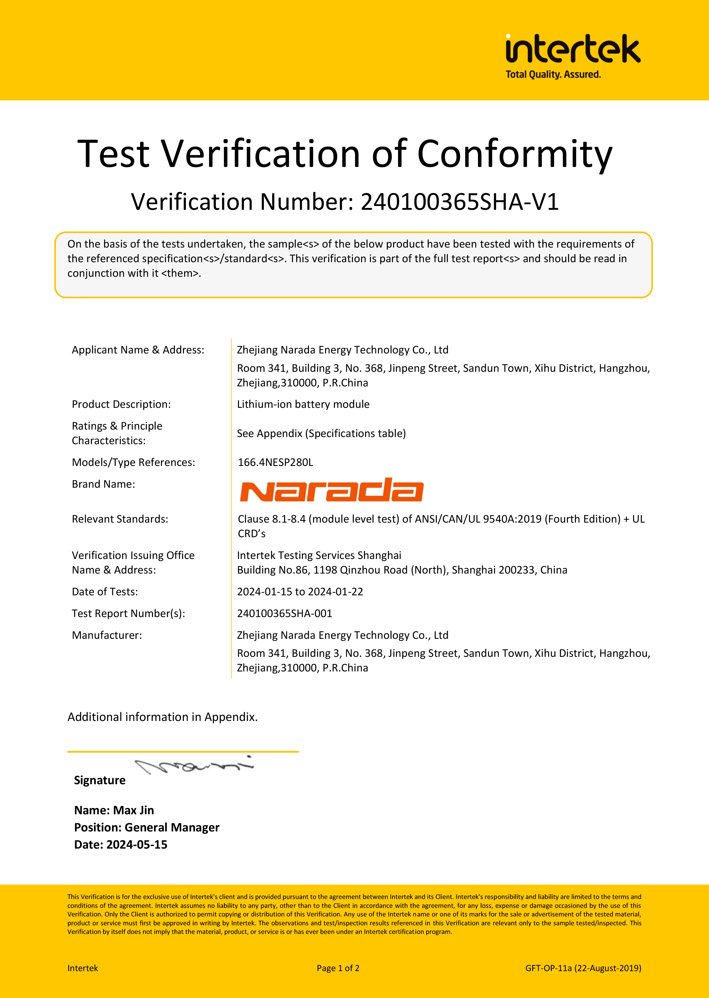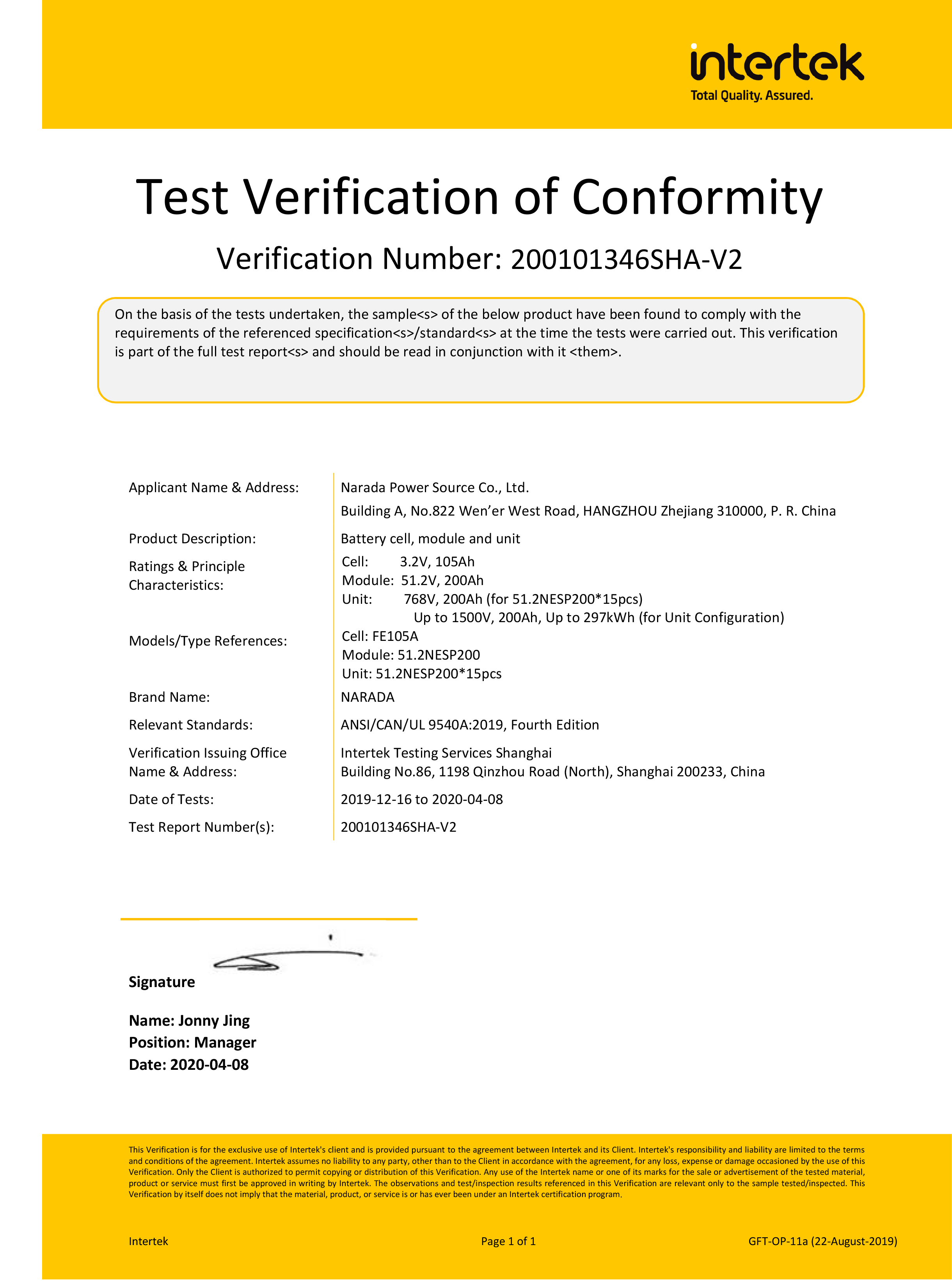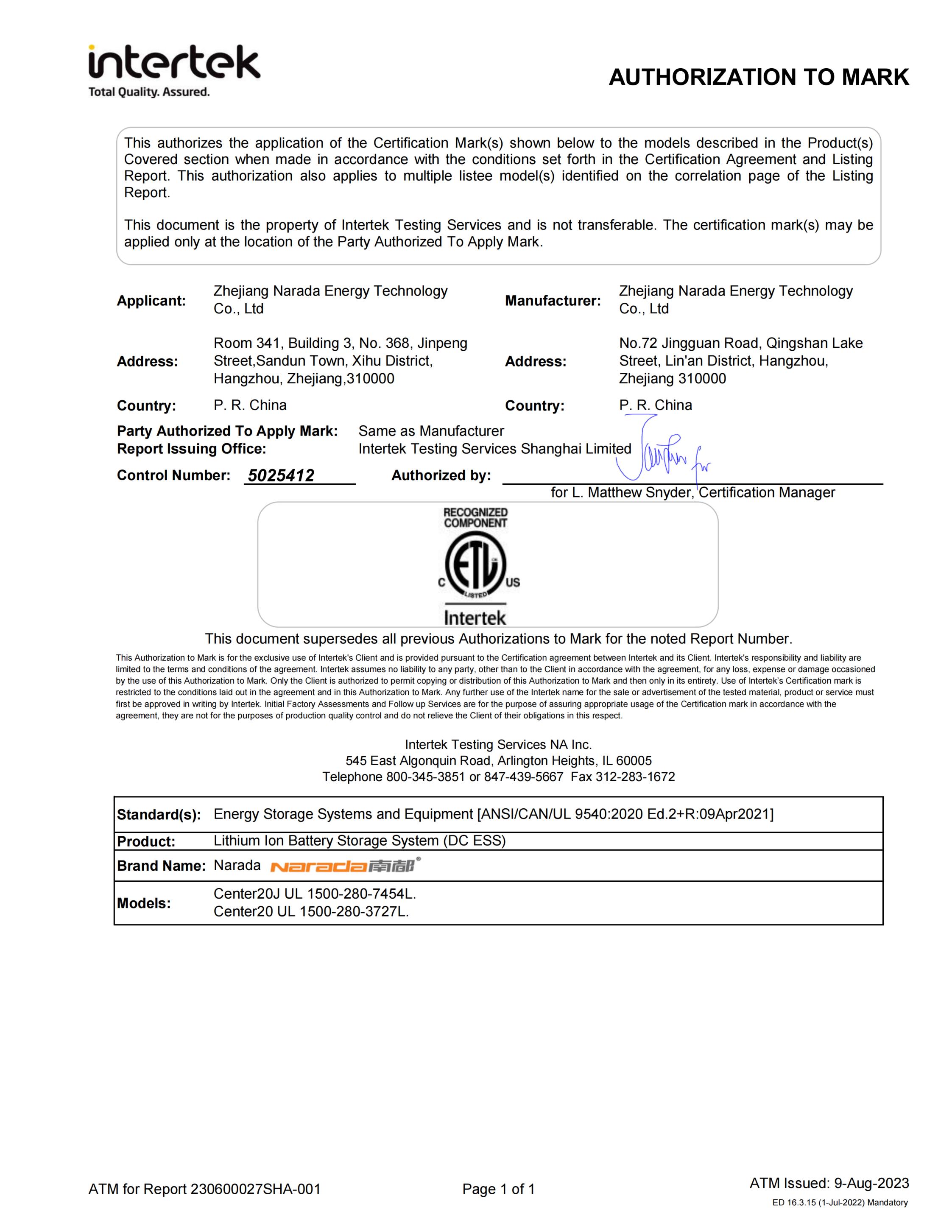 350VIP浦京电源为全球第一批通过MW级集装箱储能系统UL9540、UL9540A认证的企业。通过UL9540、UL9540A认证,意味着350VIP浦京储能系统在全球范围内具有极佳的认可度。